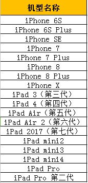 本次测试开放的iOS支持机型列表如下: