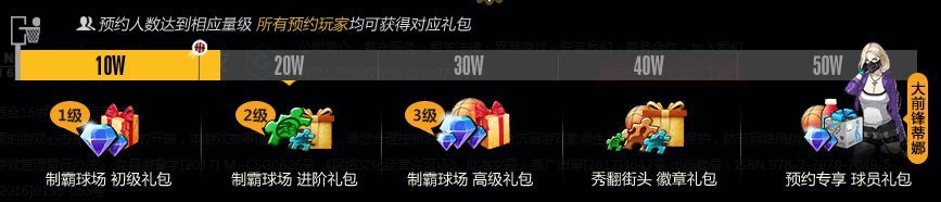 预约人数每达到10w、20w、30w、40w、50w所有预约玩家都可获得丰厚礼包!