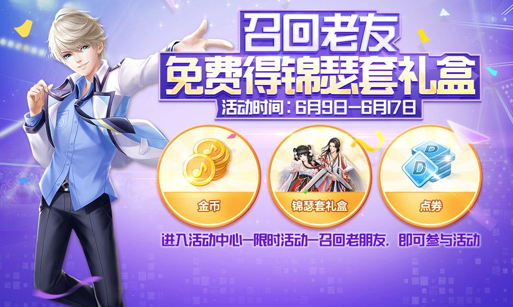 有了毕业礼物,是不是感觉自己高考完又充满了活力呢?6月9日至17日期间,66邀请各位小主人召回曾经的老友,与之携手共同挑战新曲。当然成功召回老友还能获得不菲的礼包哦:金币、点劵,以及最近主打的第一套古风臻品时装“锦瑟套礼盒”。