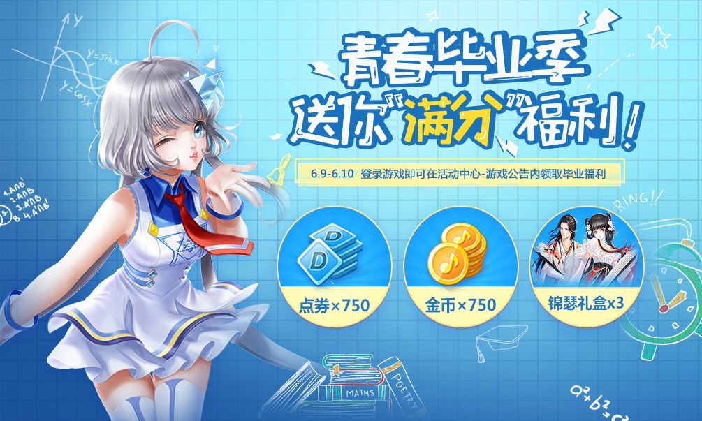 6月9日至10日,各位小主人登陆游戏即可在活动中心-游戏公告内领取毕业福利: