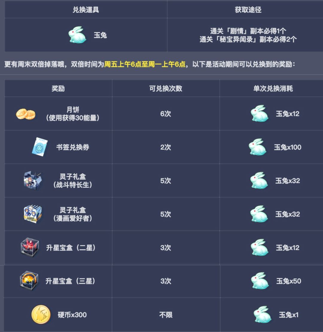 全新中秋兑换活动也随之开启了哦☆