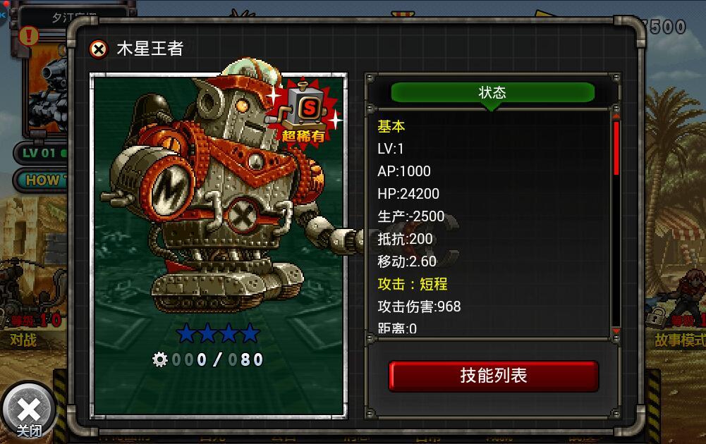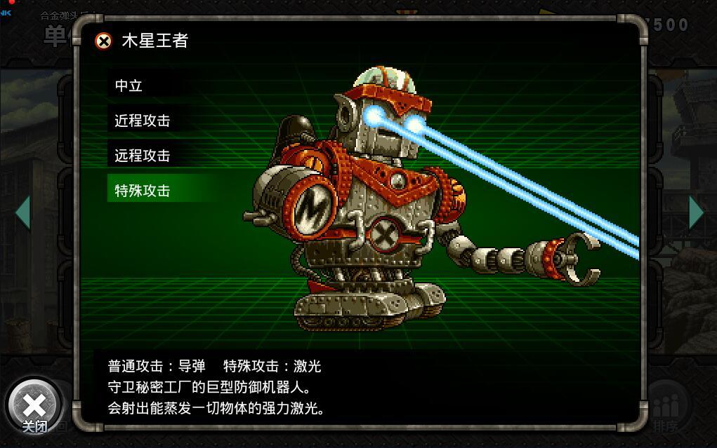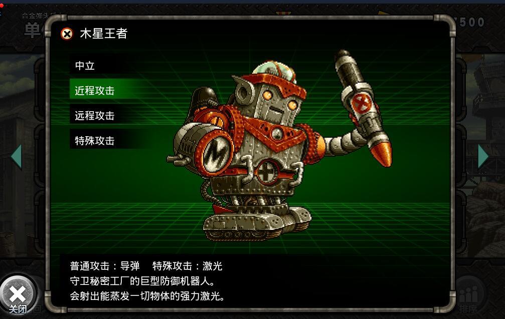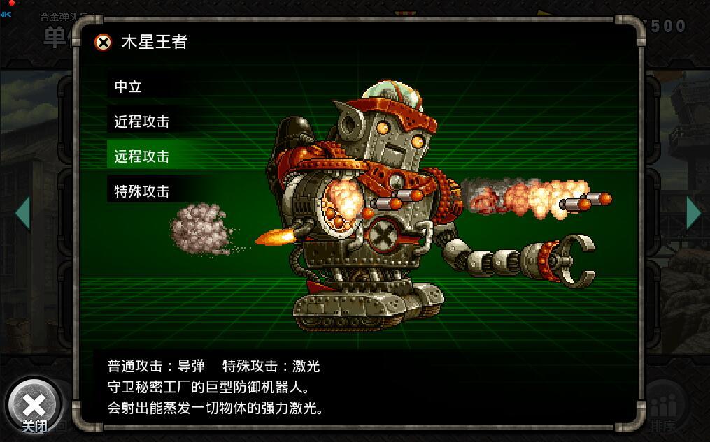 众所周知,《合金弹头反击》里面的单位实在是数不胜数(其实是可以数清的,这样说才能展现出我们游戏的魅力嘛),虽然有很多新面孔,不过有一个单位让老玩家们一眼就认了出来:巨大的机器人,双眼发射激光,腹部喷射导弹,灵活的四肢关节,正是“合金弹头3”的第三关boss——木星王者。木星王者是守护莫丁军军火库的巨型机器人,有敏锐的思想和强大的火力,灵活应对正规军的挑战,在《合金弹头反击》的玩家如果获得了这个单位,也能回想起来当年被这个机器人折腾的感觉了吧。