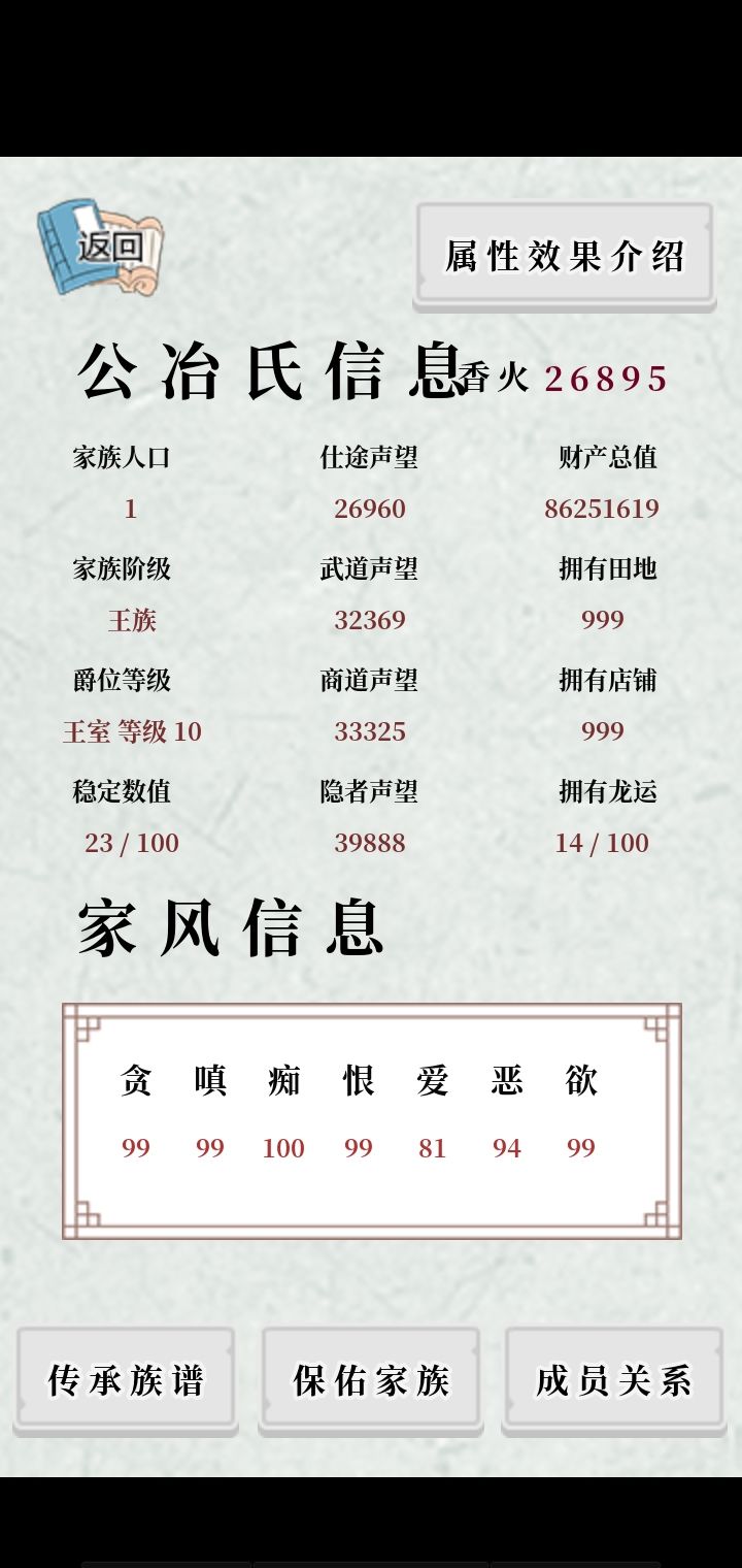 主要就是升声望,升就完了,但是,别建立王朝,不到50年,全部死完了。。。。。。