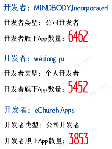 在拥有名片的开发者中,有三个开发者旗下 App 数量惊人;