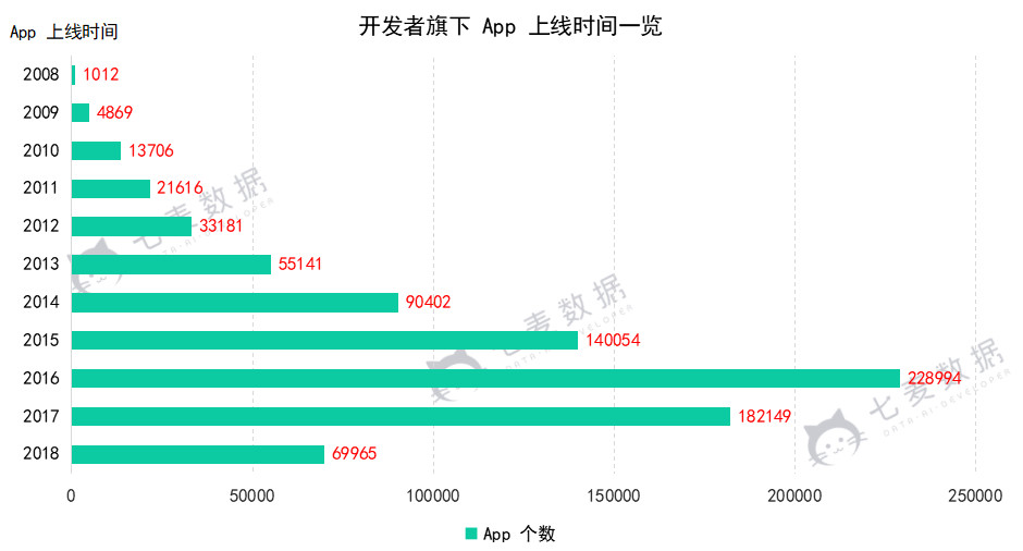 拥有名片的开发者旗下 App 多数为 2016 年上线,老账号可加以利用。