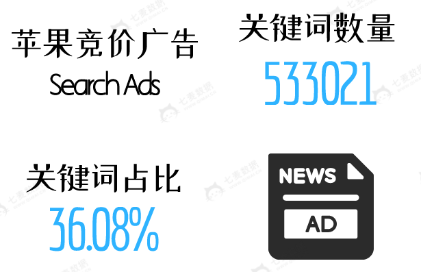 美国区搜索结果出现苹果竞价广告的关键词已达 36.08%,这一数据说明,有三成左右的搜索结果出现广告,而苹果竞价广告( ASM )往往展示在搜索结果的第一条,非常醒目,自然能分得不少流量。