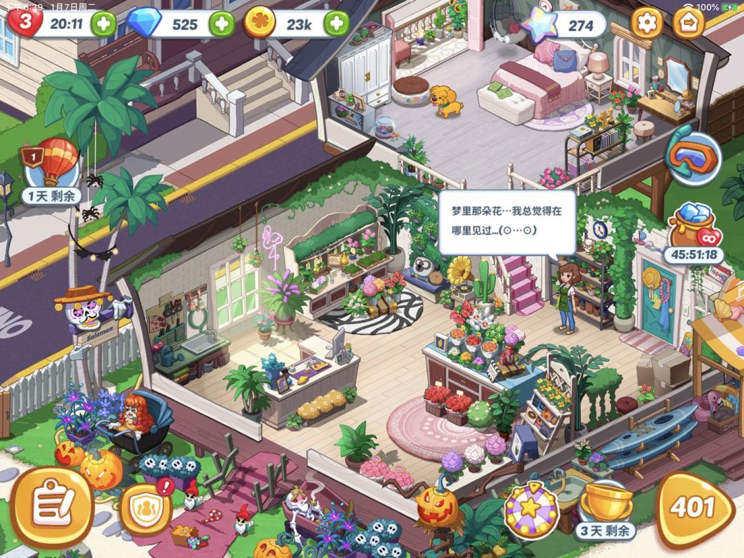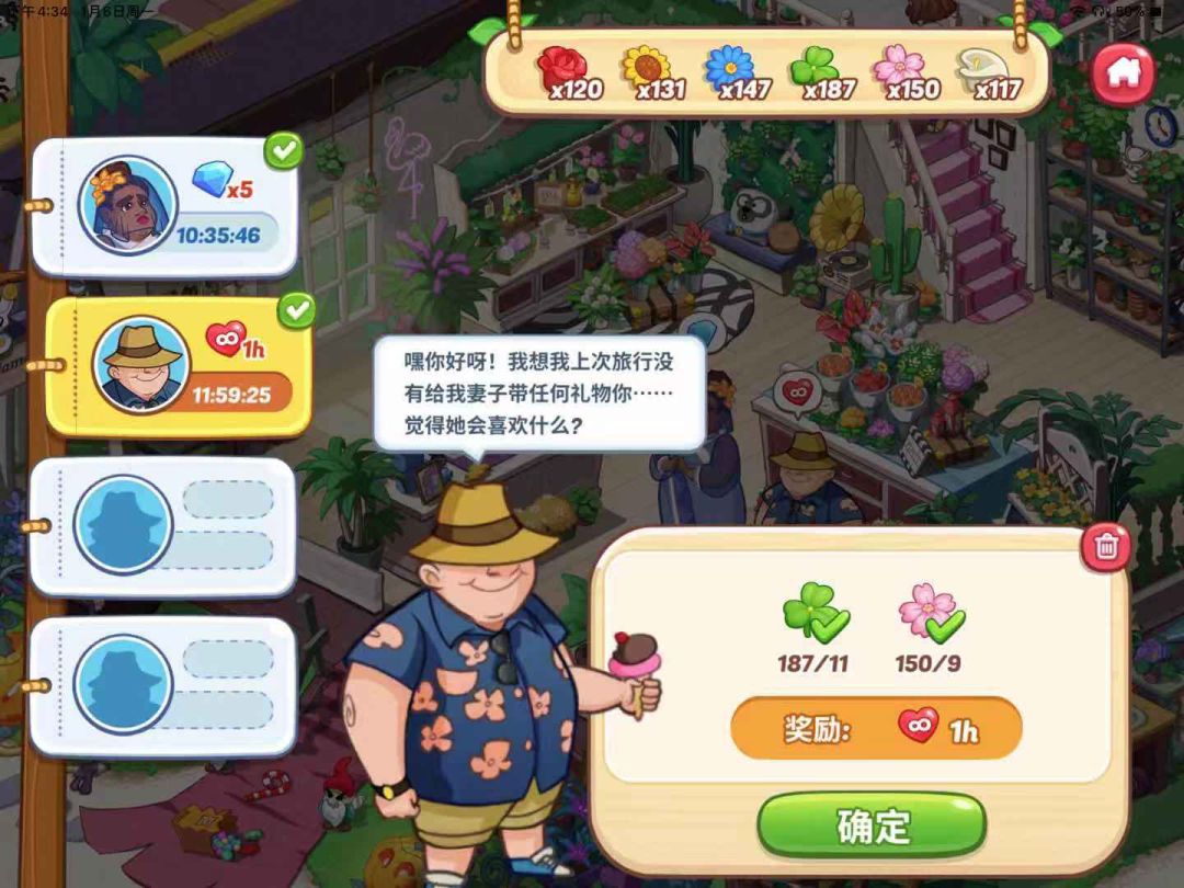 玩家经营的花店会时不时的有各式各样的顾客光临来购买花束,只要能够满足顾客的需求,顾客就会给予玩家各式各样的奖励例如无限体力,钻石、游戏内道具等等。经营用的花束则可以通过完成关卡、每日签到、潜水任务等活动中来获取