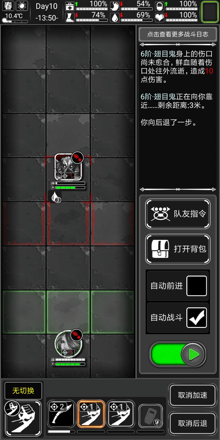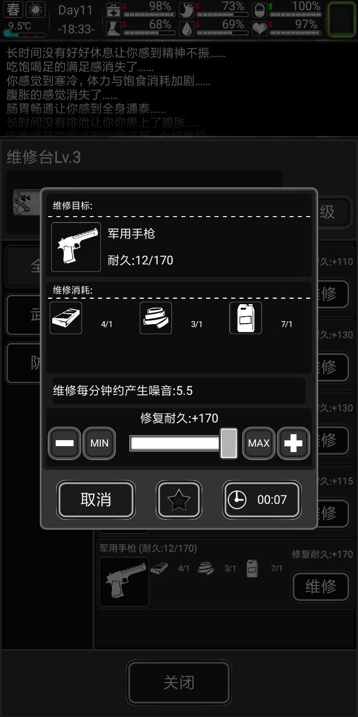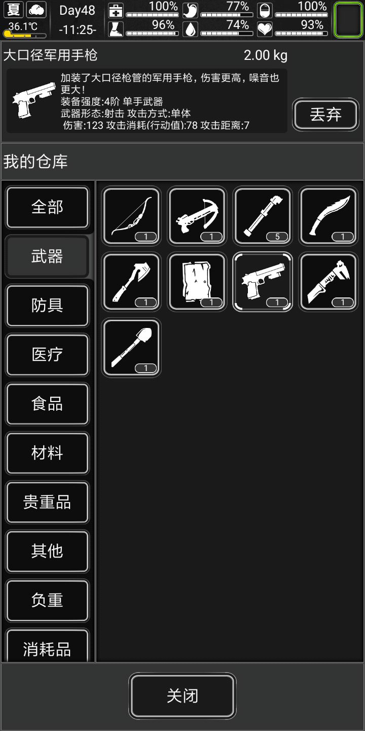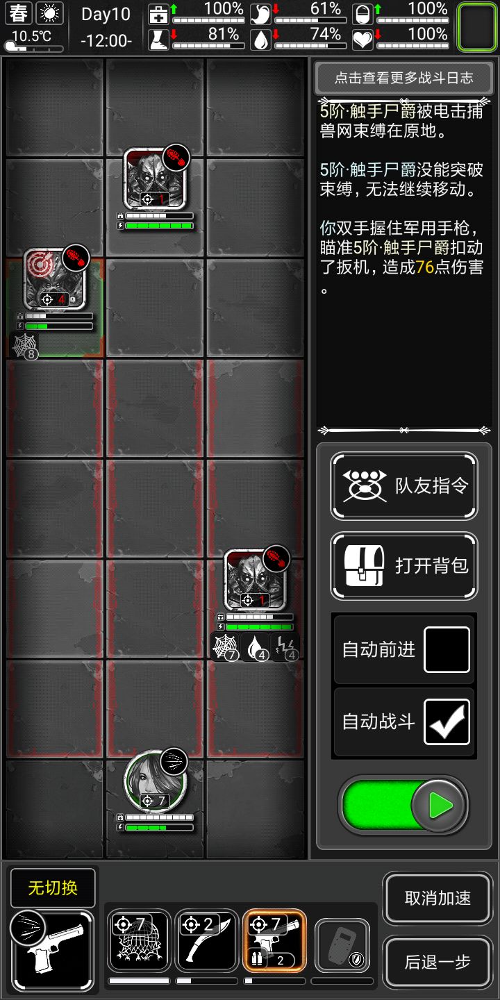 手枪也留点耐久,碰到触手腐化起码要能解决掉,碰到劝退君王就掉头吧