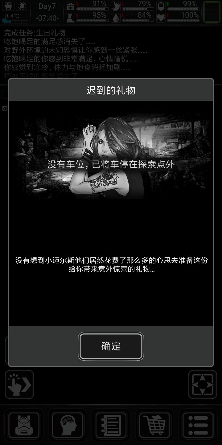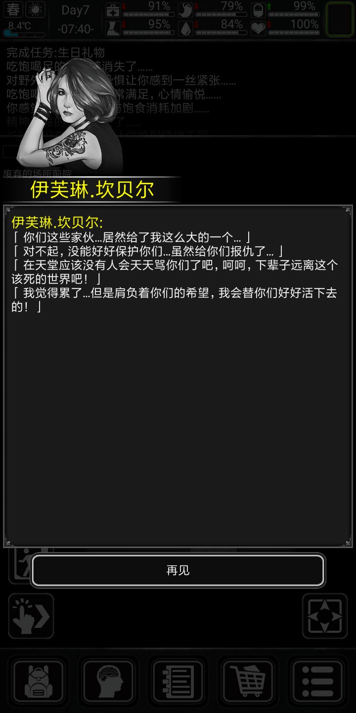 另外大姐头剧情剧情完结,第七天结束第八天,面包足够,水足够,翻车(划掉)毒镰搬家公司上门,搬家这东西要趁早,越早越好