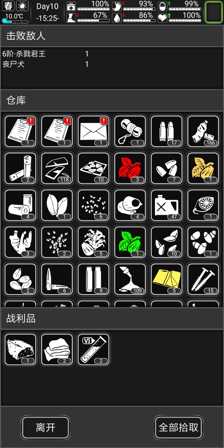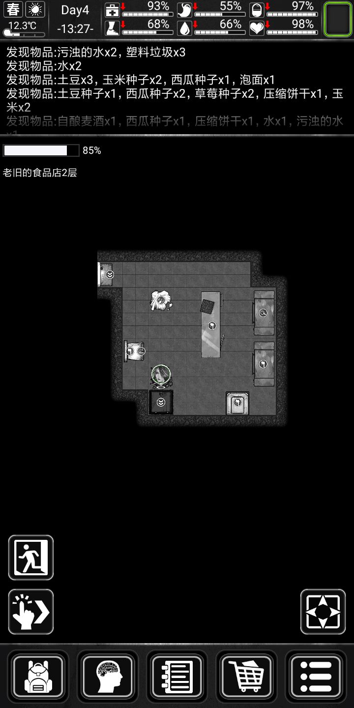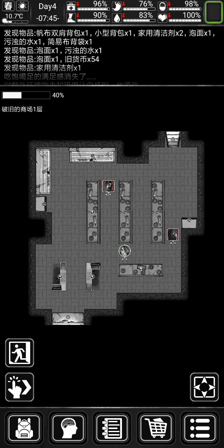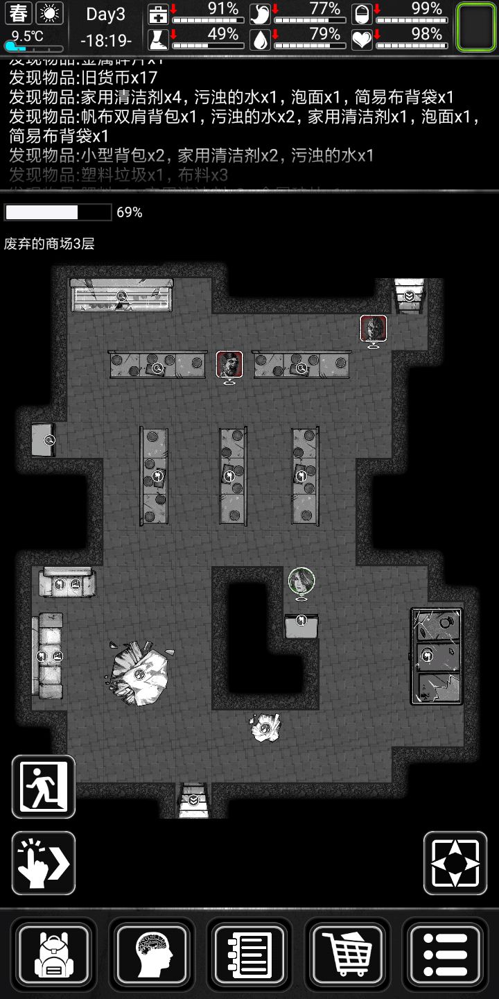 前期搜点中,首选商场,医院,商场有吃的,水,还有塑料,金属啥的,东西很全,最重要的是还有钞票