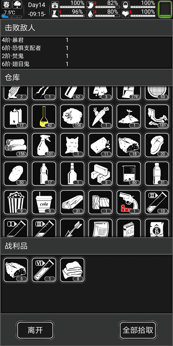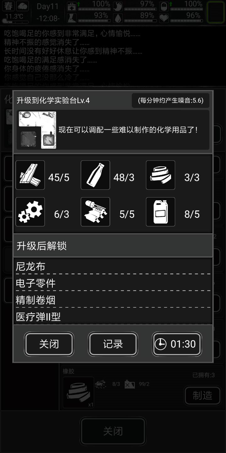 对了,前期要升门,二级门就可以防僵尸敲门了,回家升升科技,升实验台,做了些材料,结束