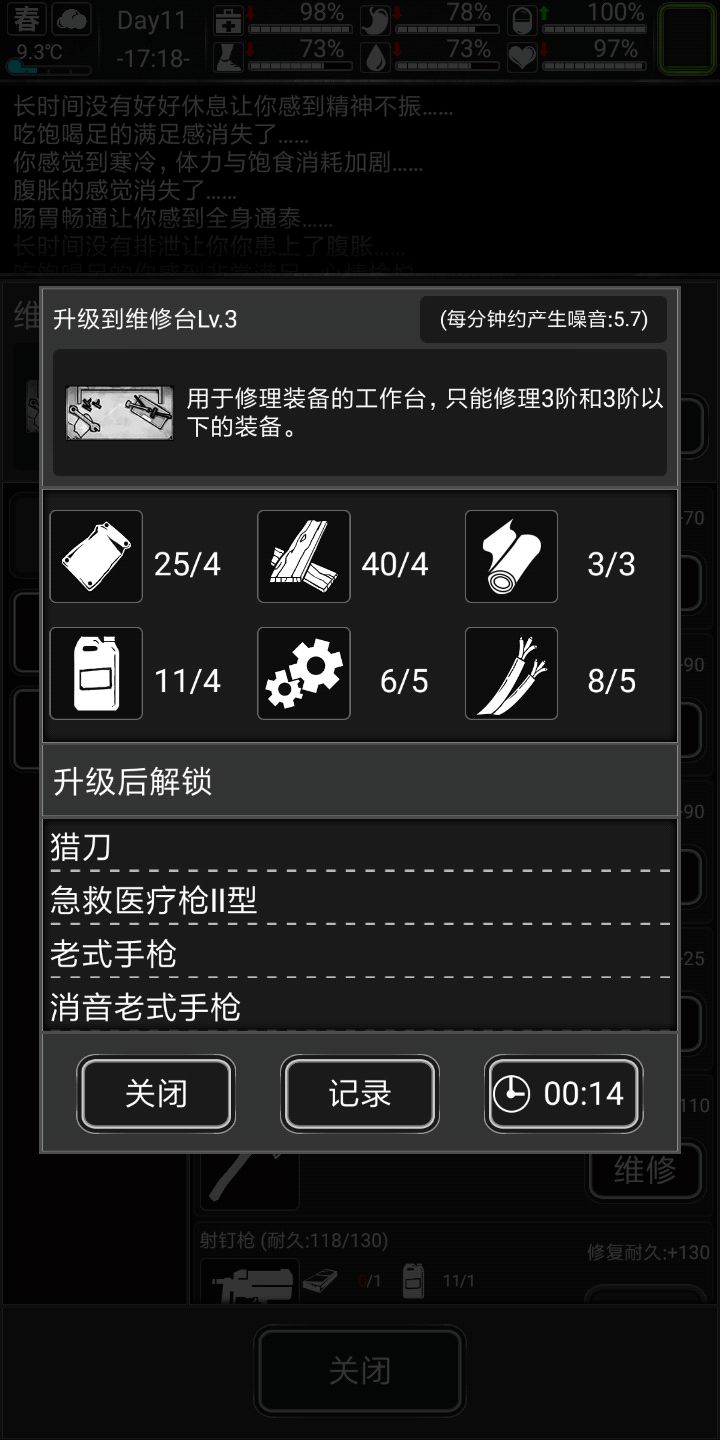 两个泡面解决,搬家完成,前十天的全部主要日程已经完成,捡垃圾坐等电台开放,等下一波节奏第九天捡垃圾,做材料,跳过第十天,电台终于是开了,可以去打尸潮刷血啦