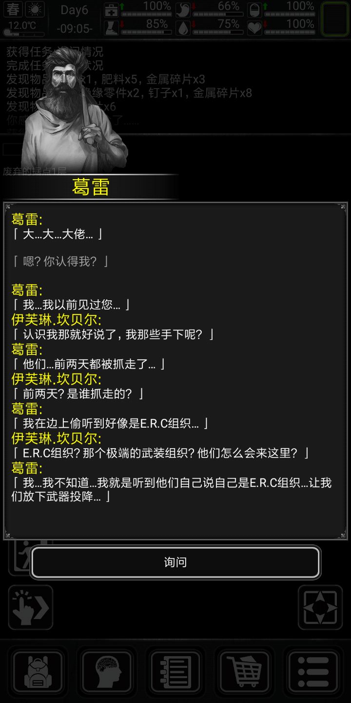 好,说下专属剧情,剧情不跳过,因为小弟前期会给东西,前期让你杀僵尸的任务点会很肥,ERC的劫匪会掉污水,刚好前期缺这些东西,徳维特剧情会给小口径手枪(据说他就是拿那个小手枪打死小天使的,滑稽)子弹,,也会有复仇ERC的任务。好,开始生存(前十天比较困难(顺便给大家看下剧情)会特别详细),渡过前期的童鞋可以跳过
