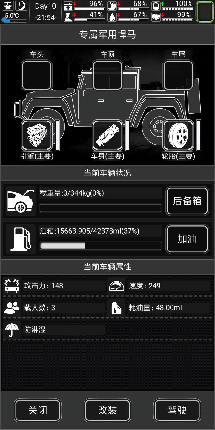 。。几个商人比较分散,然后悍马就跑了一趟就这样了。。。(所以前期摩托车舒服一些),第十天结束第十一天,搞科技吖
