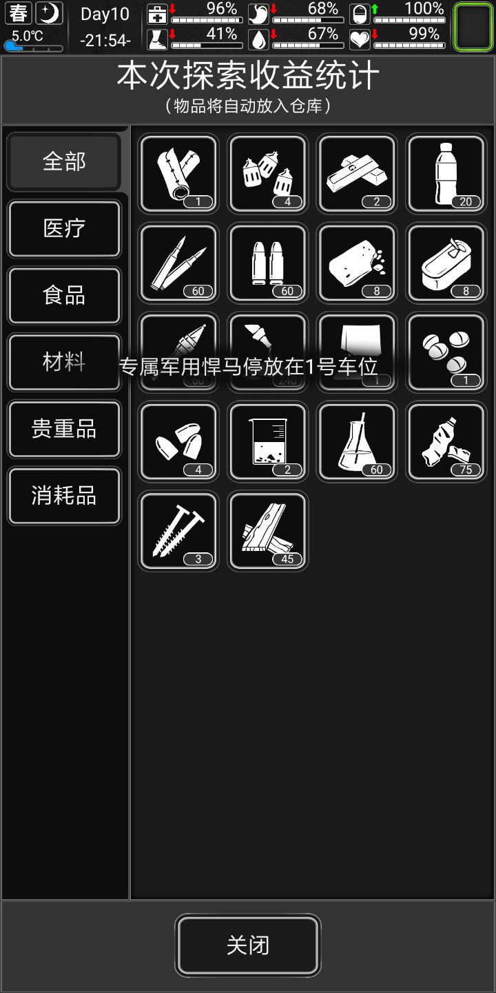 (前期能获取的最值钱的东西之一)医院也有吃的,主要泡面,绷带(医疗系,而且有点值钱),和维生素片(前期回健康主要靠他)而且维生素片前期也算值钱,三十多维生素片能换某个奸商一个小木门,不过医院前期有医师(手长打不过)需要有了射钉枪或者小弩打好,回到主题,搜到食品店,五金店,工厂,写字楼也是可以,公园,武器店,服装店,加油站等等不是特别好,物资少楼层低,所以搜到几个医院很赚
