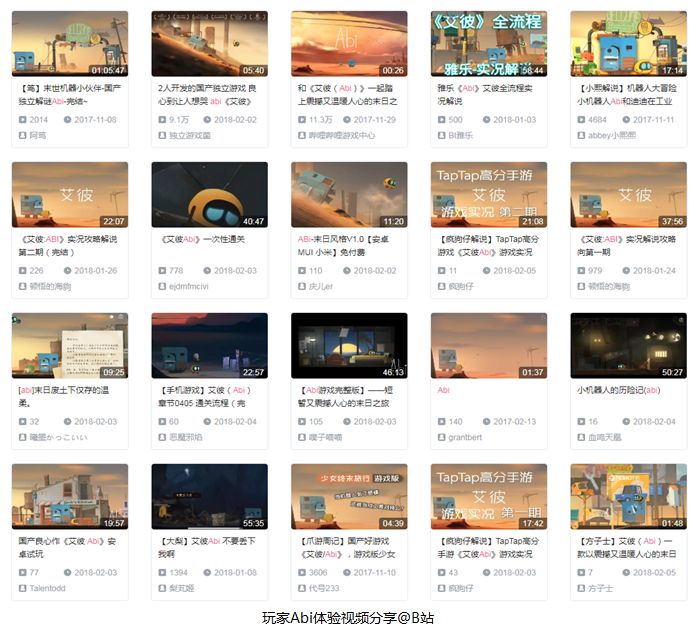 在B站搜索关键词Abi,看到满满当当的通关、实况视频,内心真的只能用最简单却也是最真诚的“感动”二字来形容...