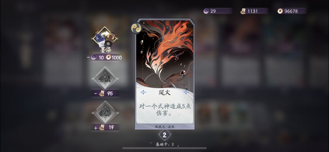 除了开卡包,御札合成也是获得心仪卡牌的主要方式,R卡、SR卡、SSR卡合成分别需要95御札、950御札与4800御札,分解则分别可以获得19御札、160御札、1500御札。