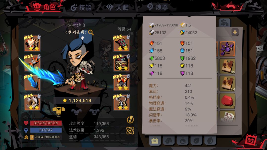大家可以看到,很平常的52装备,平民的不能再平民的星痕了,我的属性95%的大剑都能达到,甚至超越。