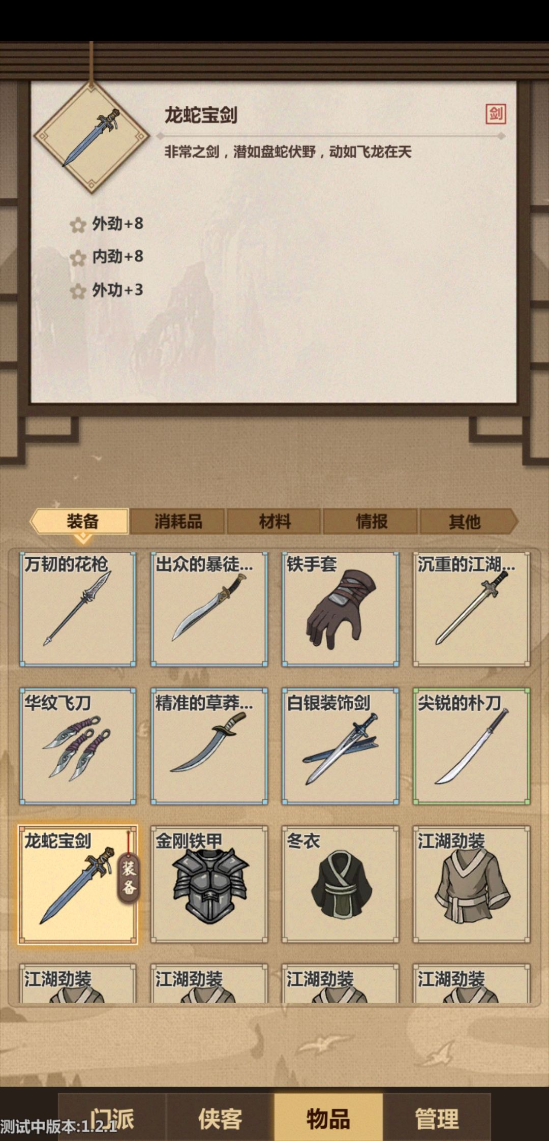 总算论剑第一了,奖励了宝剑和绿色内功,无敌了啊。