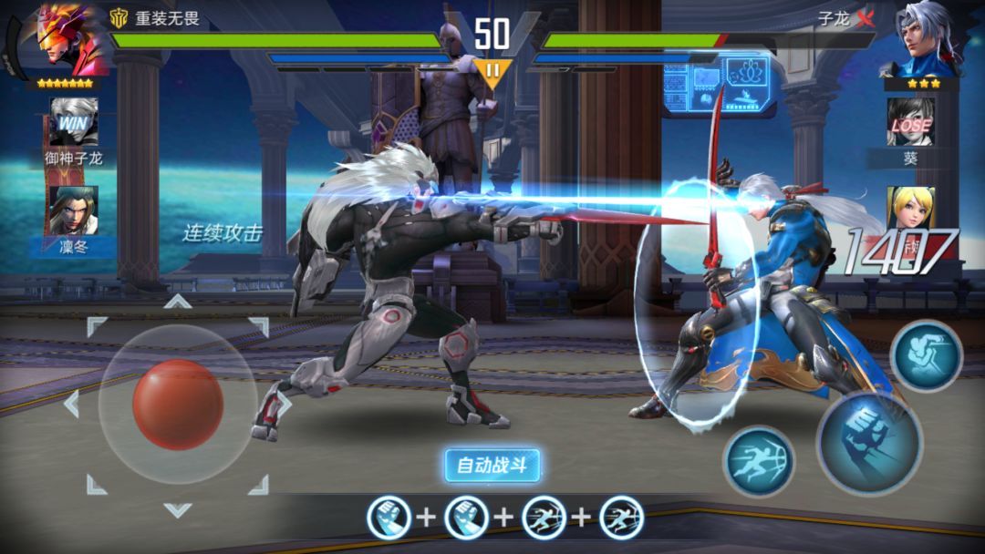 做为一款3D真格斗搓招手游,科幻架空三国的题材,高清3D角色建模,丰富的格斗流派由你选择。回归格斗游戏热血本质,连招、防御、投技、闪避、上下段攻击悉数还原。激燃关卡畅爽战斗,拳拳到肉的打击快感!零延时实时公平PVP,让玩家找回纯粹的格斗乐趣。