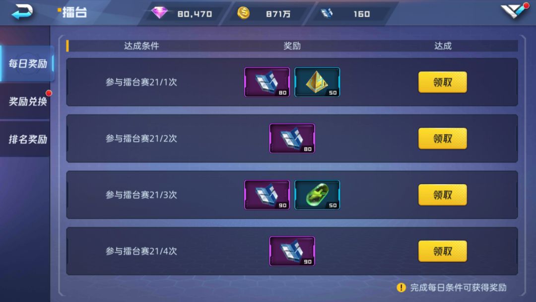 同样作为PVP的玩法之一,参加擂台的玩家不但可以彰显自己的爆表战力,更可获得擂台每日任务领取荣耀币、科技能源与神石等奖励。随着排名的提升也会获得可观的钻石奖励。