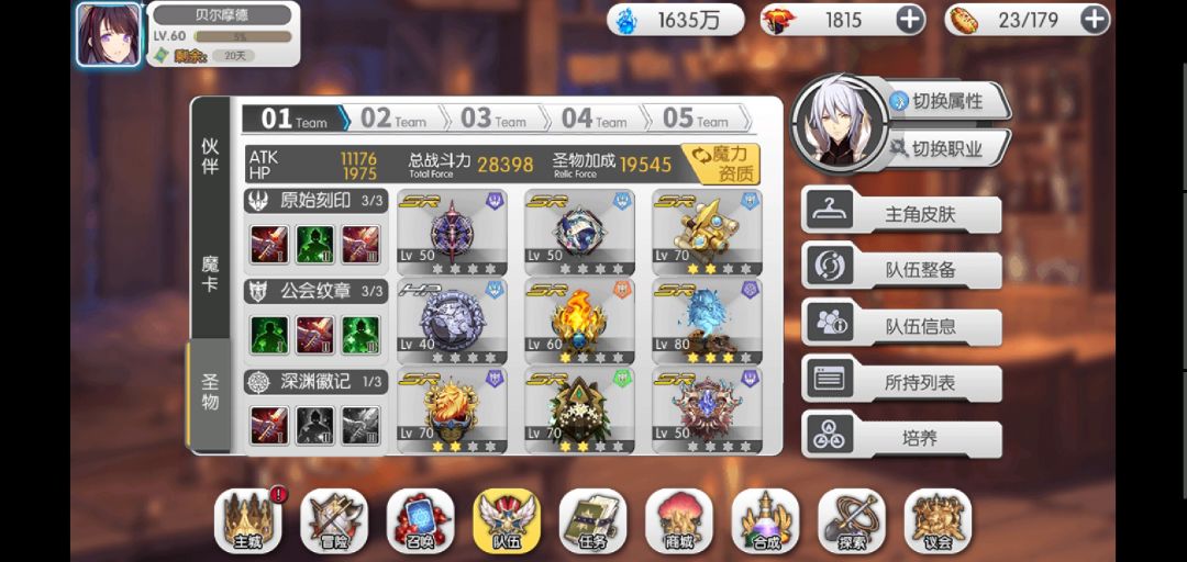 以下截图是3种极限难度手动过关的阵容详细,魔卡和圣物都相同