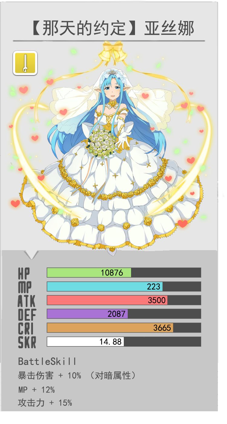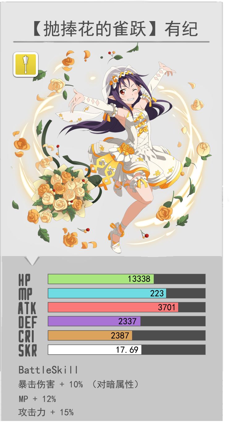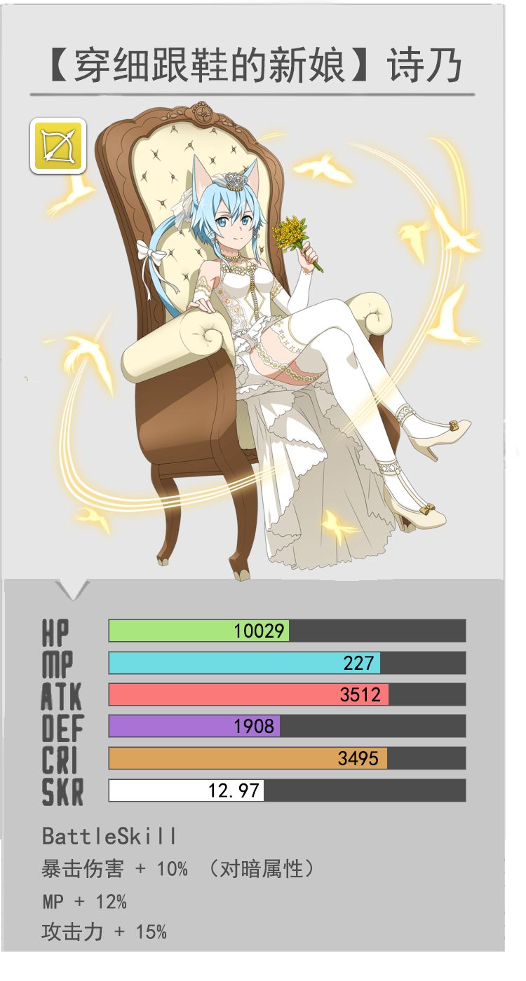 搬运自【刀剑神域:记忆重组欧盟】的人物测评(稍作修改),至于我嘛......又做了几张条形参考图( • ̀ω•́ )✧