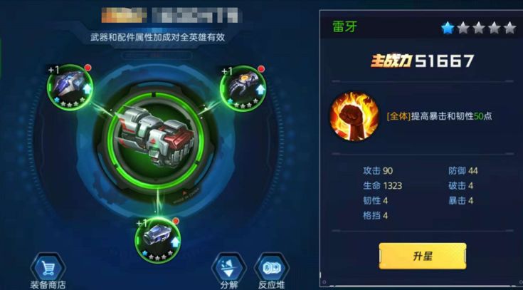配件和装备都可以升星,每次升星都会额外提升全职业属性,当三件配件全部升星后,装备可以使用金属熔岩+装备升星核心进行升星,升星成功后会大幅度的提升战力,并且提升装备的加成效果。