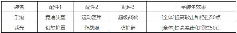 蓝色品质装备是游戏内比较容易获得的装备,在新手期间系统也会赠送几个配件。属性加成比较低,目前游戏内有两件。分别是手炮和紫光。