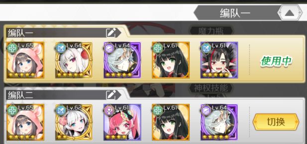 右上角查看和切换出战编队。这样的编队一共可以有十个,同一个角色可以放入多个编队中。从其中选择一个作为出战编队。