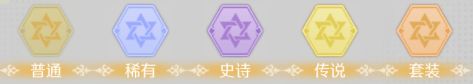 并不是和大部分其他游戏一样,颜色代表品质和稀有度。实际上白蓝紫的装备都是只有在游戏初期(大概二三十级前)才穿一穿的,这个游戏的装备实际上只有传说和套装能用,稀有度这种概念读者可以自行点开一件装备,查看他的获取途径对比一下。