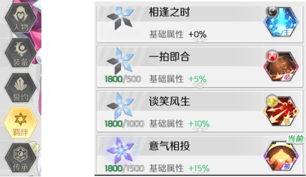 点开主角以外的角色,会发现多了一个“羁绊”,这就是主角偷学技能的地方了。