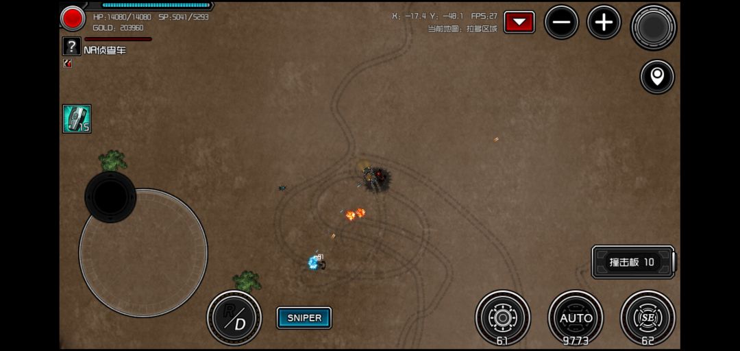 到了该区域后,红狼发现了几辆NR侦查车,忽然有一种莫名其妙的感觉,于是下定决心要干♂爆它们 然后,你得到了一个新任务:击破足够的NR侦查车
