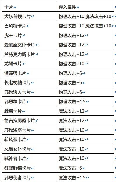 *为目前存入属性为“暂无效果”的头饰和卡片增加了生命上限、物理攻击或魔法攻击,详情见附表。