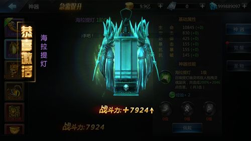 海拉提灯具有深度养成空间,通过神器觉醒功能,可以提高它为你提供的属性加成。当神器觉醒到一定的星阶,还会解锁额外的技能效果,让技能伤害效果更加强力。觉醒所需的材料,可以通过特定玩法或者钻石购买获得。