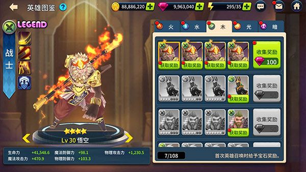我们还可以看到,火属性底下有112种不同星级的英雄,水、火、木、暗属性底下都是108种不同星级的英雄,这样就可以推算出,《校园传说》中英雄的总数是136个。