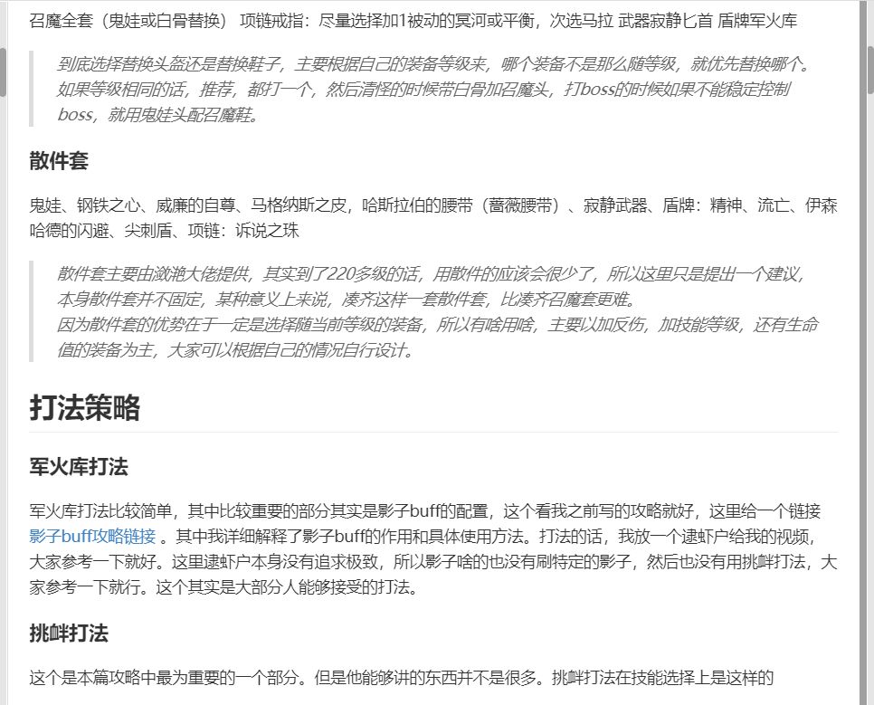 因为散件套的优势在于一定是选择随当前等级的装备,所以有啥用啥,主要以加反伤,加技能等级,还有生命值的装备为主,大家可以根据自己的情况自行设计。打法策略军火库打法军火库打法比较简单,其中比较重要的部分其实是影子buff的配置,这个看我之前写的攻略就好,这里给一个链接 影子buff攻略链接 。其中我详细解释了影子buff的作用和具体使用方法。