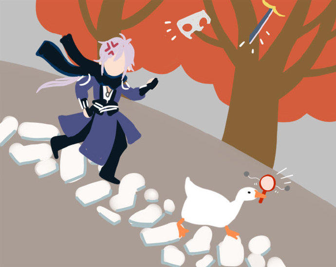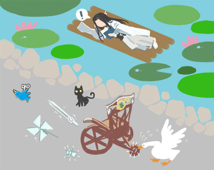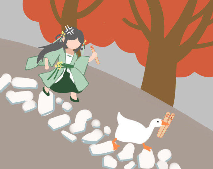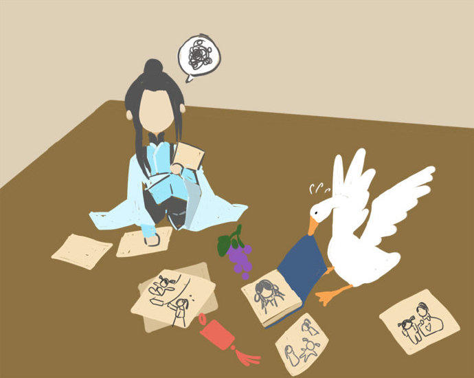 从汴京到五重溪到杭州到三清山不少人深受其害,然而犯罪嫌疑鹅至今依旧逍遥法外,更有传言大鹅利用逆旅秘法穿越到了另一个次元,下面是受害人之一某绿裙女子根据自己印象所画下的犯罪现场的惨状。