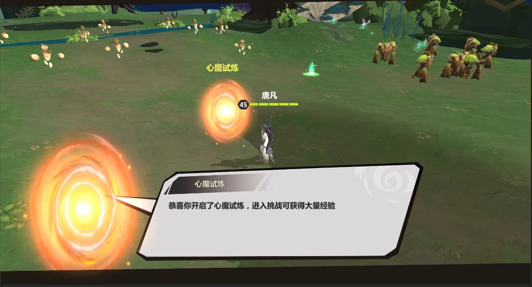 5.开启心魔历练传送门:心魔历练副本,和灵犀洞天副本类似,但这回的主旨是杀怪,只要击杀心魔历练中的怪物即可获得大量的经验值奖励,杀得越多奖励越多。