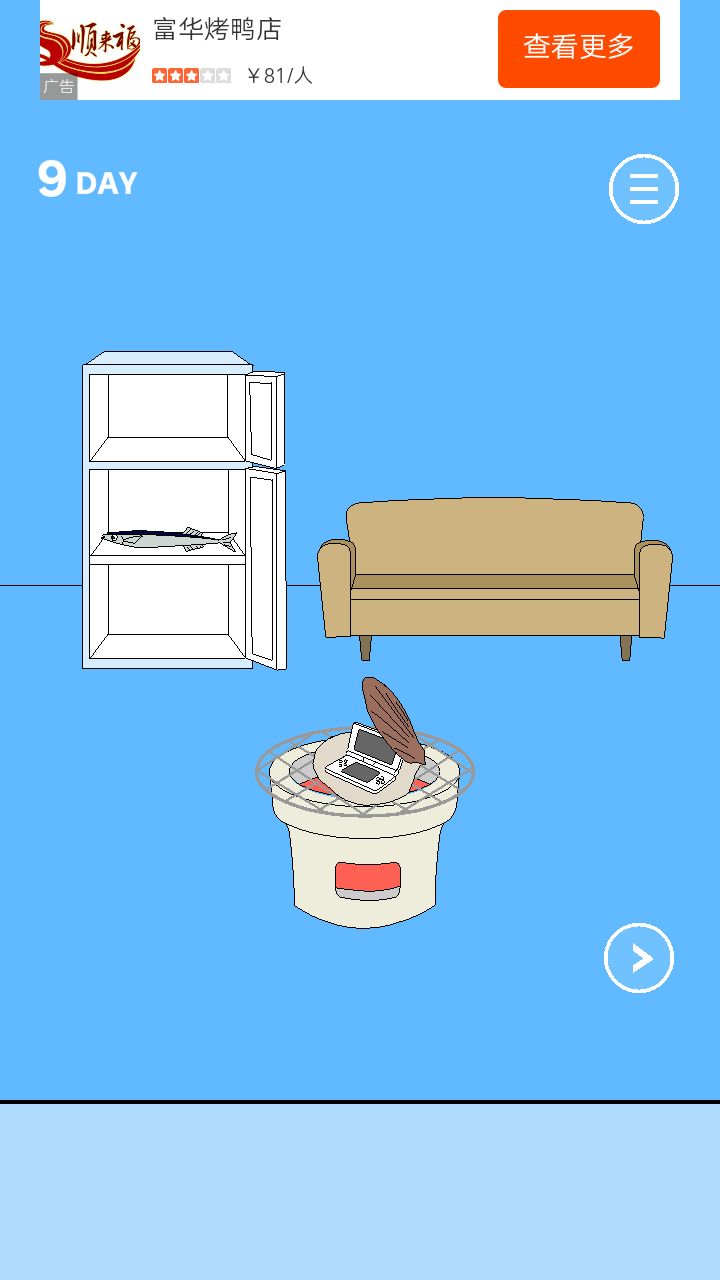 第七天【房间边上柜子里获得起钉器,把墙上的海报弄下来拿到钉子钉子放在中间骑车的人倒下记得先取回钉子再拿游戏机】