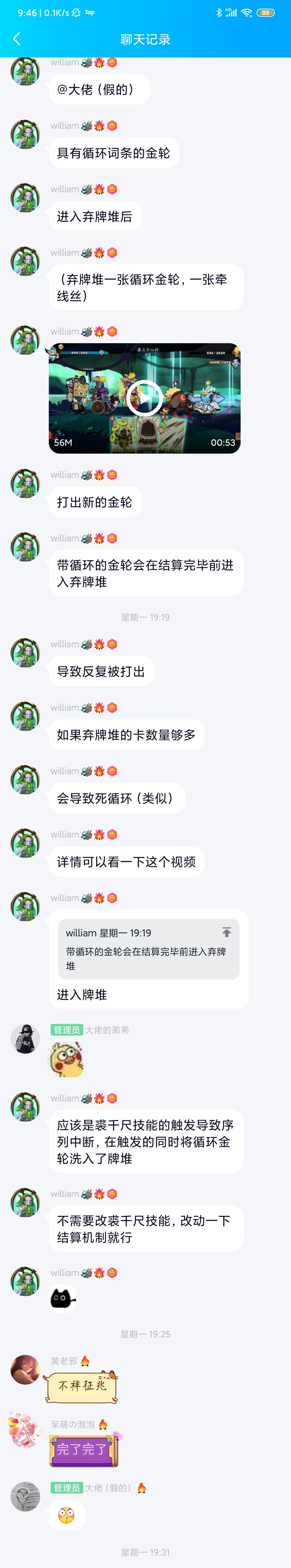 而如果这张牌有循环,也能因为这个新机制将此牌通过金轮打出很多次;但如果这张牌是金轮,那么在现有机制下就会出现自己打出自己的无限死循环,实测当废牌库很大,程序结算时间过长时,循环金轮就有很大概率在结算完之前就回到抽牌堆顶。(你们知道为啥星狐新增的双生词条被ban了吗?就是因为他给金轮附魔了双生,配合橙化形公孙夫人,一发入魂……)