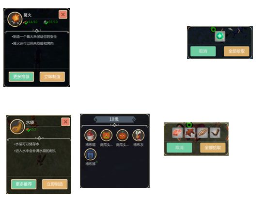 5、口渴进入水源中就能补充水分,通过击杀猪牛羊获取兽皮制作皮革再加工成水袋用于补充水分。采集棉花用于10级制作棉布服饰。