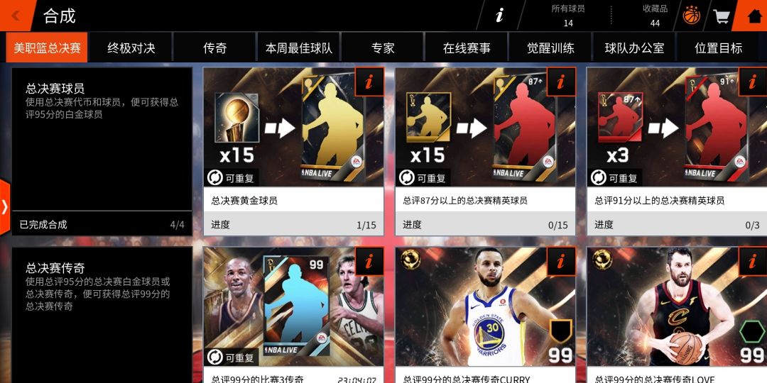 3.美职篮/经典总决赛训练各可以得到一个总决赛代币及一个球员(品质随机,可能是白银,可能是黄金,运气好红卡球员也不是没有可能)