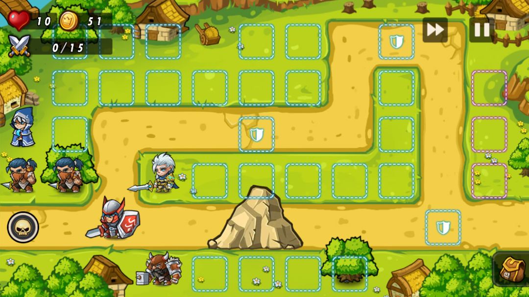 最终阵型:石头被炸开后,补出更多大剑士和神射手,如果血量紧张,在后方出更多祭司即可,只要能在第六波的小丑之前做好输出的准备,本关经济还是很宽裕的,掌握正确的方法后不算困难