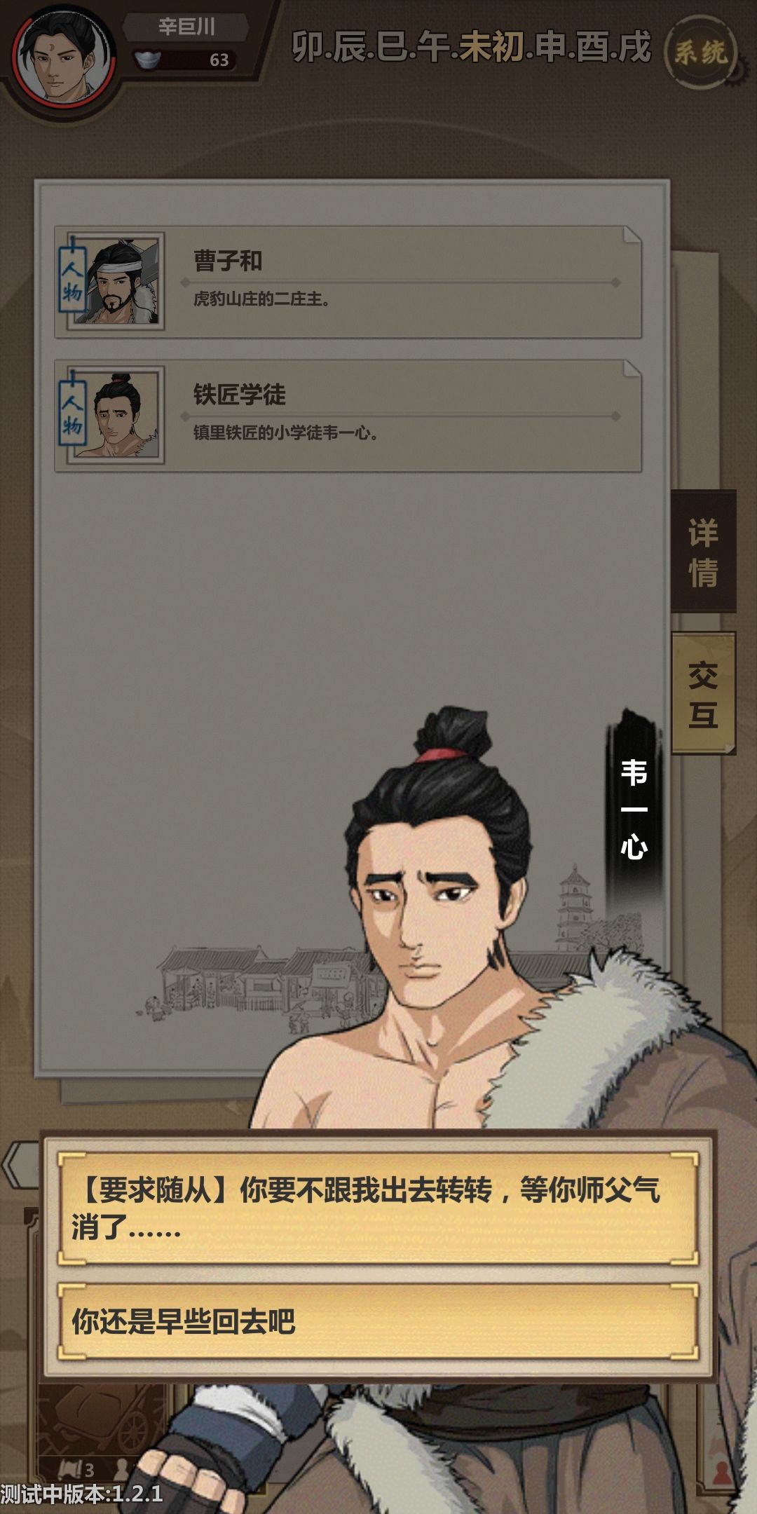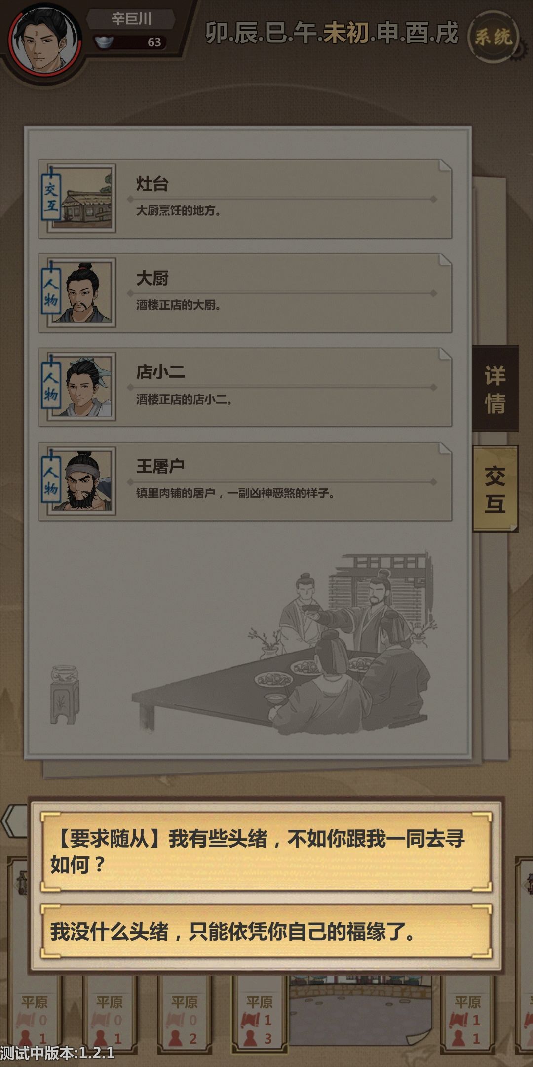 【算命的攻略】:首先去寺庙卖鱼,卖完后点放生,不要等待半小时,然后花完口袋所有的钱,去买早市和小二的食品以及药品和矿石,花到小于20即可,然后对话会触发算命被抓,你将会获得30金和占卜道具(屠夫必随从重要道具,防止邀请屠夫第二个选项自身条件不够)。