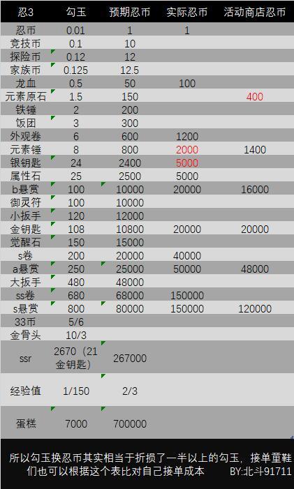 忍3勾玉,忍币兑换一览表