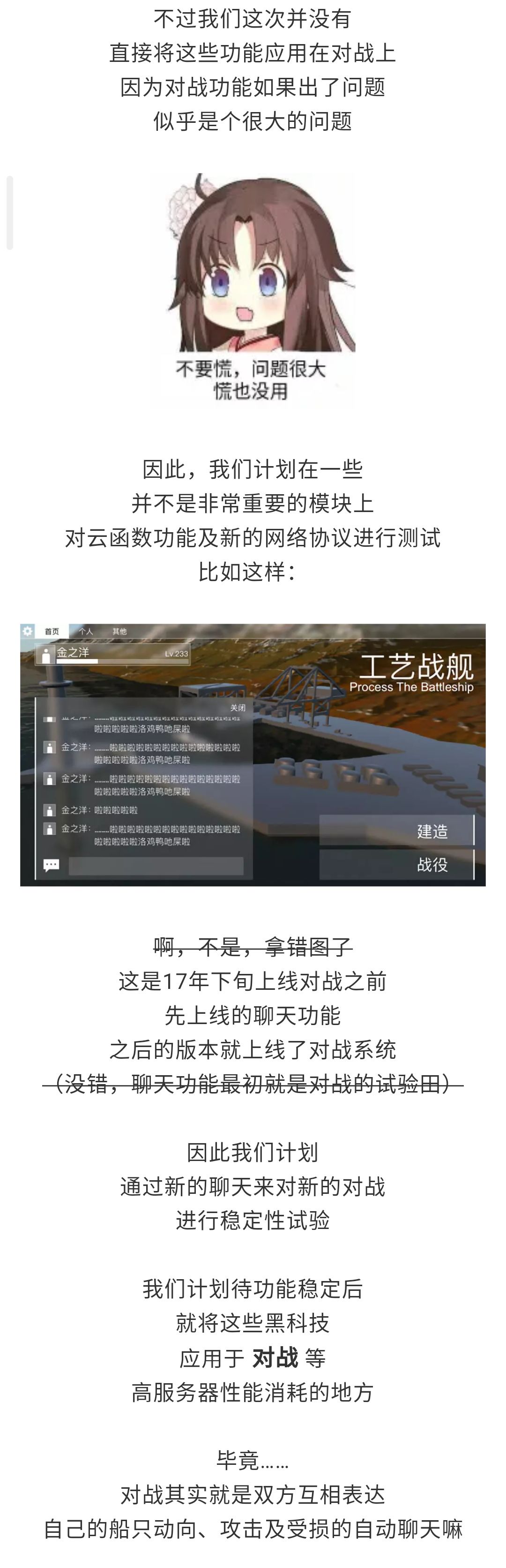 A1:目前我们还在开发 内部测试阶段。这仍需要一段时间一定的修改与调试。相关进度我们会定期在贴吧、TapTap 及官网公示开发进度。也可以加入我们的官方 QQ 群 587778629 或微信搜索【ProcessTheBattleShip】关注我们的微信服务号。游戏开发是一个非线性的过程。我们可能会在短时间内有较大突破,也有可能一段时间毫无进展。感谢大家支持。关于游戏先行测试版本的下载,请见上方内容“关于官网测试版本” 。