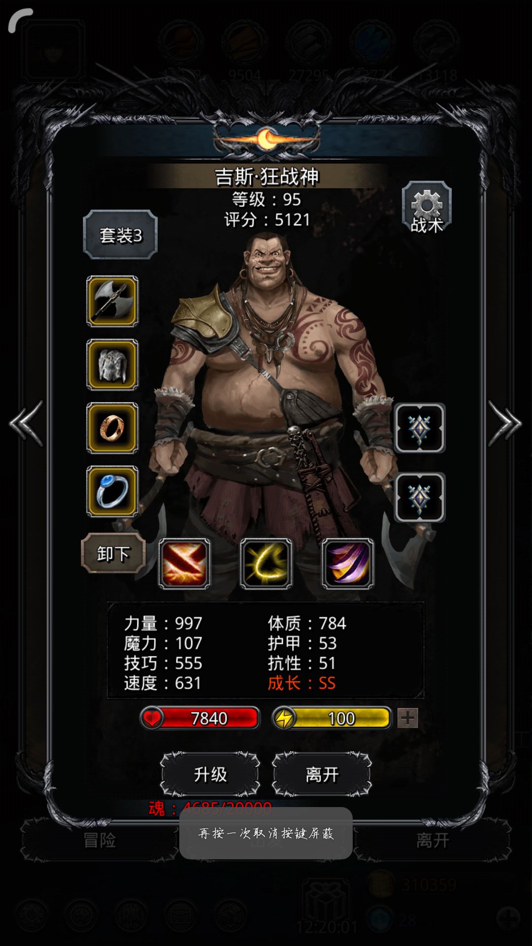 打小怪的时候是挂机的,三次小怪要观察你的狂战最高暴击伤害