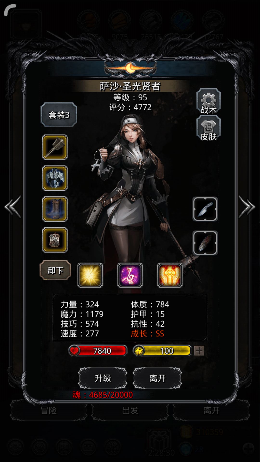 法杖(推荐月杖>神罚>璀璨)+圣者长袍(高抗衣服也可以)+魔力鞋+魔剑士之戒+战利品回复>体质