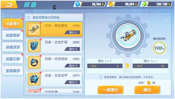 玩家可以通过装备强化系统,强化身上所穿装备等级,获得更高的属性,更换装备后,强化等级会自动继承,不会丢失。强化装备需要消耗游戏金币,及时根据人物等级强化装备等级,是保证战力的关键因素。